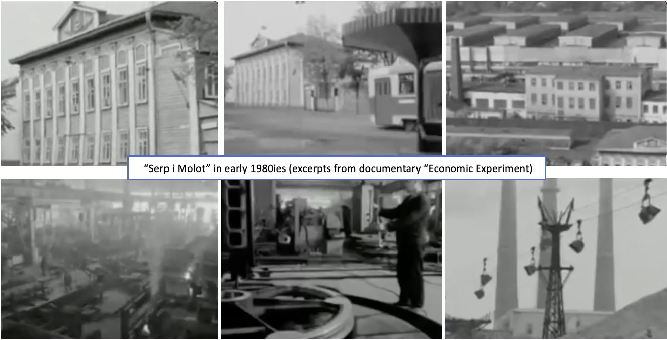The plant stayed stagnant until 1922 when the new Soviet Government repurposed it to manufacture the equipment and tools for agricultural needs. A new name for the plant was coined: Urak hem Shchukeshch / Serp I Molot / Sickle and Hammer. During the industrialization period in late 1920ies, the plant changed the direction and started manufacturing conveyor belts. During the World War, the plant produced the helmets, sapper shovels, cartridges, and cases.