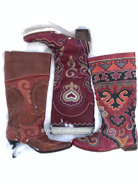 The due credit and appreciation are not always given to the skilful developers of the unique art in those museum collections: Successful Tatar leather artisans and entrepreneurs had not only manufactured uniquely decorated footwear in its “birthplace” Kazan-Arshcha area of Tatarstan to sell globally, but also had travelled far to trade and open workshops in Central Asia/Turkestan, Caucasus, Eastern Europe, cities of Rossiyan Empire. They shared their exceptionally-processed leather technology inherited from the Volga Bulgars (referred as bulgari/ safiyan/ sahtiyan/ yuft’) and unique decorated footwear making skills, they trained apprentices throughout European and Asian continent for centuries up until early 20ies century.