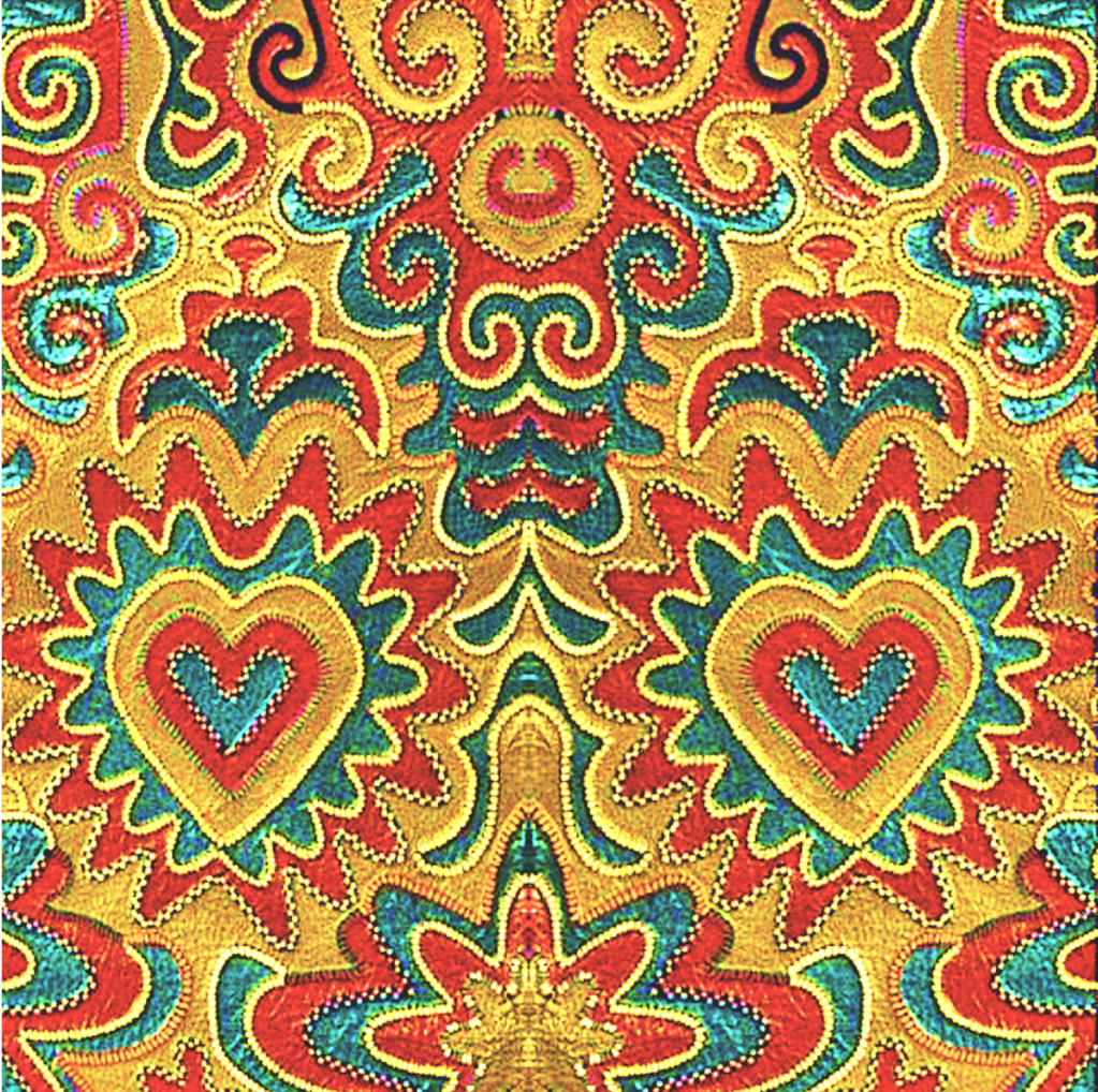 This artwork is a rendition of the 18 century shchitek’s leather mosaic design from Kunstkamera Museum collection.