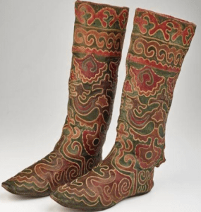 Checkout this 3D image (created by BilgeBitig) of shchiteqler that gives an excellent view of the boots’ wholistic structure. These virtual boots were modelled from the mislabelled (as it frequently happens) kaiyly kün shchiteqler mastered by the Tatar people.